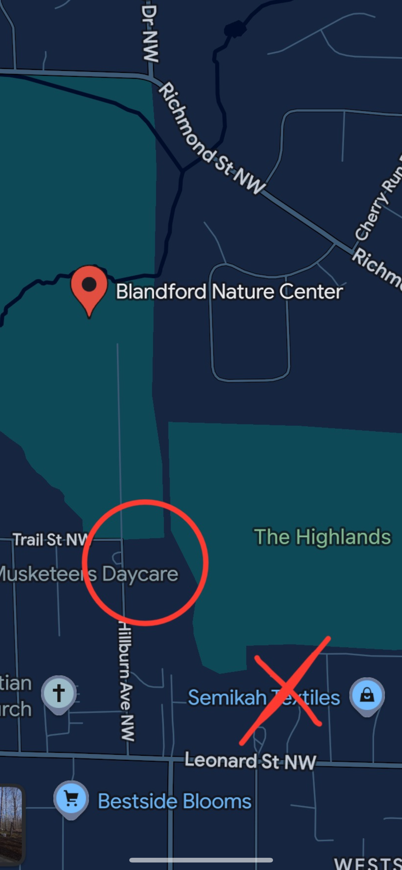 Use “Blandford Nature Center” in your GPS — 1715 Hillburn Ave NW, Grand Rapids — but note that you’ll stop before you reach the nature center itself.